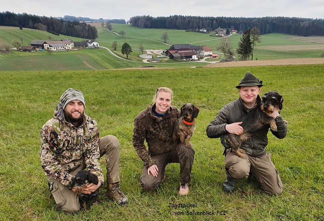 Für EMIL und EGON war es allerdings überhaupt das erste Mal: Erstlingsführer, erster Hase, keine Übung. Viele Kilometer sind sie von Liechtenstein extra bis ins "tiefste" Österreich gefahren. Es hat sich gelohnt, denn beide Rüden haben ihre Passion unter Beweis gestellt: bei EGON gleich am ersten Hasen, EMIL hat die 100P am zweiten Hasen voll gemacht! Die angewölfte Spurlautanlage hat also ohne Probleme bei beiden funktioniert :-) Ein herzliches Waidmannsheil und ein RIESIGES DANKE auch an dieser Stelle aus dem Brixental ins Fürstentum Liechtenstein!!